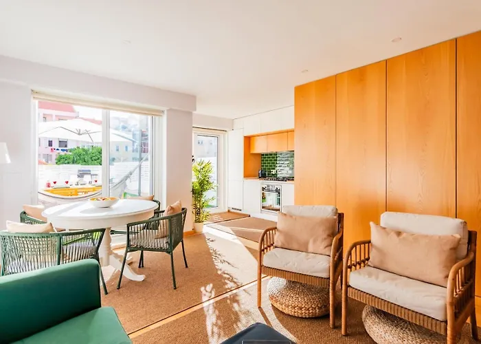 이 160m^2 아파트는 리스본 포르텔라 공항에서 5km 떨어져 있습니다. 파티오, 바베큐 기구도 포함되어 있습니다.